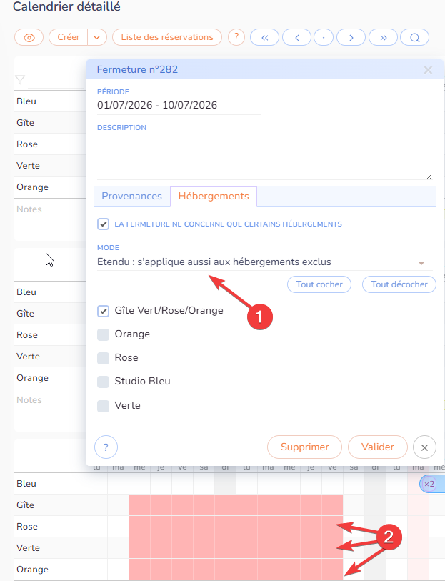 La fermeture de ces chambres s'affichera sur le calendrier détaillé 2.