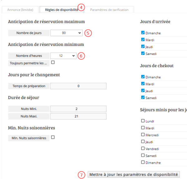 Cliquez sur l'onglet “Règles de disponibilités” 4