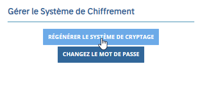 1 ) Pour saisir un nouveau mot de passe, vous devez d'abord désactiver le cryptage en place. Cliquez sur 'Regénérer le systéme de cryptage'.