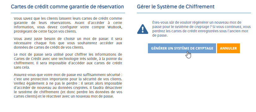 ATTENTION ! ne confondez pas le mot de passe pour vous connecter à Wubook et le mot de passe pour crypter les données des cartes bancaires. Par sécurité utilisez deux mots de passe différents.