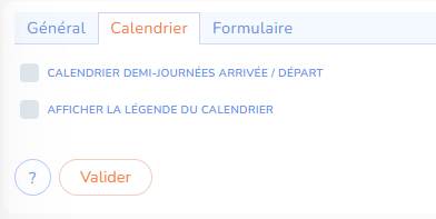 - des paramètres communs au moteur de réservation et au calendrier dans l'onglet “Général”.