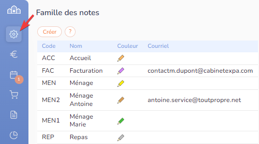 - un email (ou liste d'emails) : lorsque vous créerez une note pour cette famille, vous pourrez choisir de l'envoyer par email afin d'avertir le ou les responsables (par exemple : pour informer le technicien des réparations à effectuer).