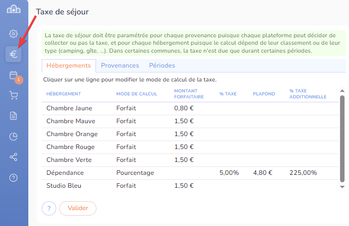 Pour définir la taxe de séjour, vous devez paramétrer les hébergements et les provenances des clients.