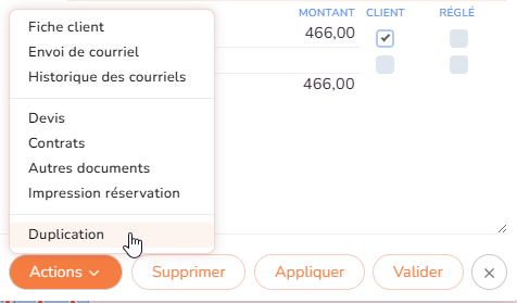 Dupliquer une réservation